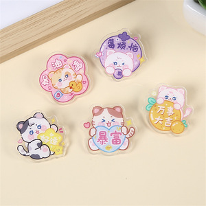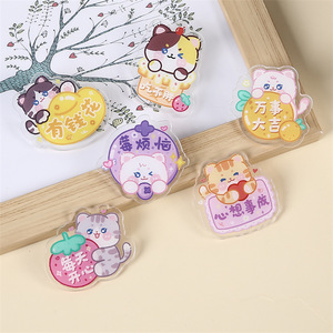 透明漫画アクリルパッチ子猫ブローチかわいいバッジ激励志願い事文字ピン掛け飾りプレゼント