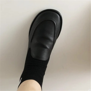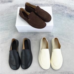 Chunyuan niche the*r シンプルで柔らかい本革フラットローファーラウンドトゥ牛革カジュアルで快適な女性用シューズ