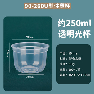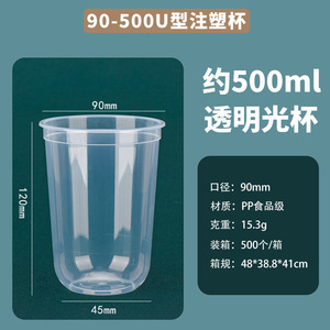 U型pp射出カップ90口径使い捨てミルクティーカップフロスト透明厚い蓋付き包装カップ工場卸売り