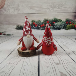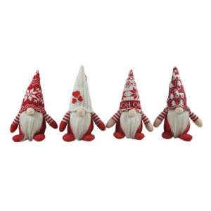 国境を越えたクリスマスニット帽人形の座り方に顔のない人形のショーウインドーがクリスマス舞踏会パーティーの装飾を飾っている
