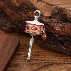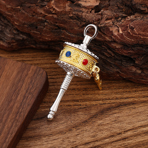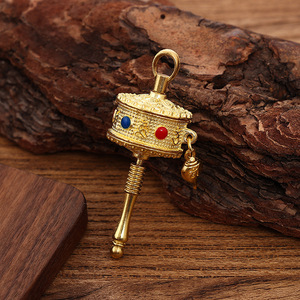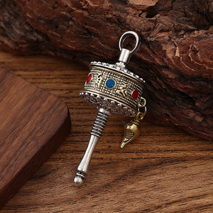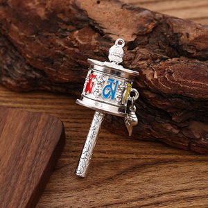 チベット風合金製六字真言手回し式経筒ペンダント、エスニック風キーホルダー、卸売工芸品