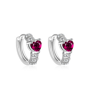 赤いコランダムのジルコンの愛の幾何学のイヤリングを入れて甘くて軽い高級な耳輪の小さい大衆の復古の耳飾りの卸売りの女性を飾ります。