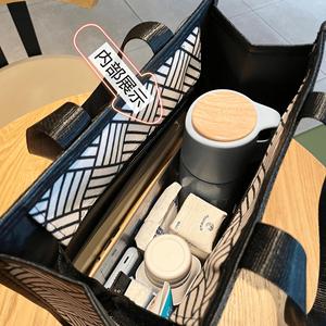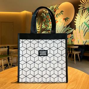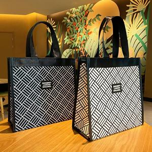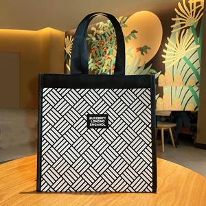 ファッション迷宮模様キャンバス手提げ袋ファッション白黒ブロック携帯通勤マミーバッグ