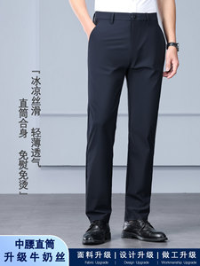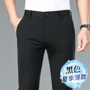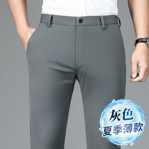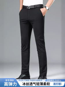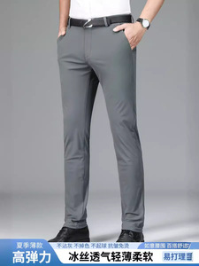 ミルク糸氷糸春夏高弾力カジュアルパンツ男性無熱抗シワビジネス薄手パンツ長ズボン