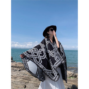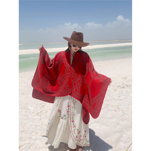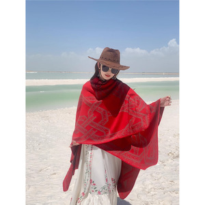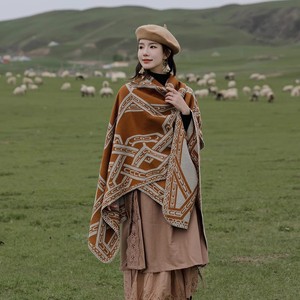 レトロな鎖の民族風のマントのマフラーの草原の砂漠の旅行は帽子のマフラーの外でマントを掛けます。