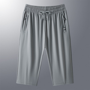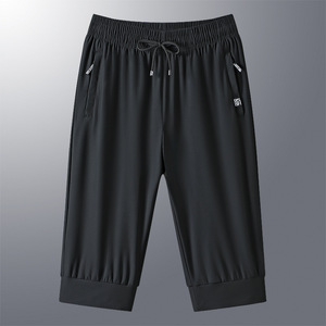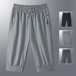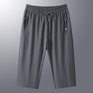 夏カジュアルパンツクロップドパンツメンズ 2025 速乾性ミッドパンツスポーツパンツアイスシルクプラスファットプラスサイズ 7 点ショーツ男性