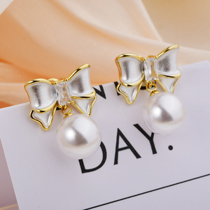 春夏の新型の甘い蝶結びの真珠のピアスの小さい大衆の設計の高級感の軽い豪華な個性の百合の通勤の耳飾り