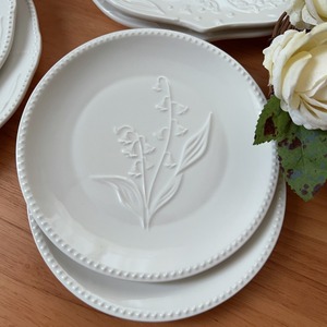 フレンチ中古風レリーフすずらん花卉陶磁器皿洋食菓子皿