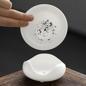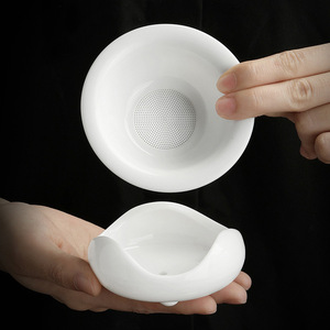 徳化白磁羊脂玉茶漏れ茶葉フィルタグループ全磁器一体穴開け茶フィルタ茶仕切り家庭用茶道部品