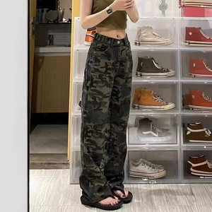 アメリカ式hiphop迷彩工装ズボンの女性は太っています。
