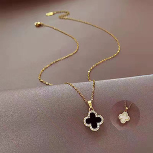 日本と韓国スタイルのファッションシンプルな四つ葉のクローバーネックレスレディースニッチデザインライトラグジュアリー多用途ハイエンドジュエリー[チタン鋼]