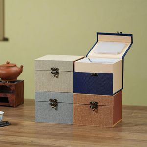 紫砂壺、リネン錦箱、レトロな曲げバックルティーセット、ギフトボックス、小カップ、磁器雑貨、香炉包装箱
