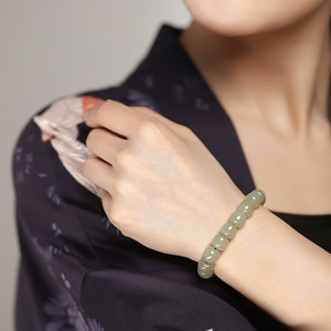 高級感のある本物の老坑晴水和田玉の古式玉珠ブレスレット、女性用夏用シンプルな玉珠ブレスレット