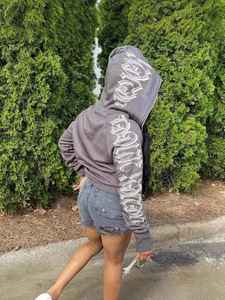 2024年欧米ファッション秋の新作無地レタープリントケンポンフード付き長袖スウェットシャツカジュアル欧米風
