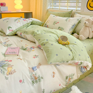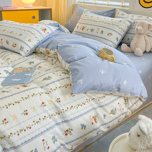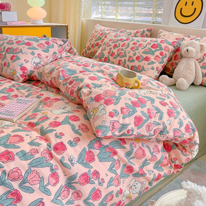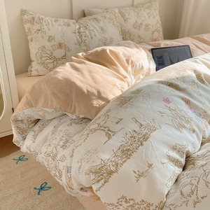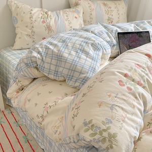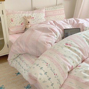 新型ins風純綿純綿100ベッド4点セット砕花春夏布団シーツ3点セットベッド笠金