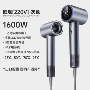 ニュートラル [欧州規制-220V] D3-110,000 rpm 高速ブラシレスモーター-2億個のマイナスイオン-気温デジタル表示-磁気エアノズル-1600W-グレー
