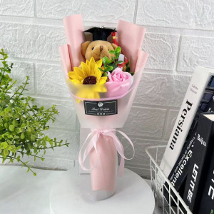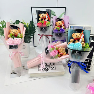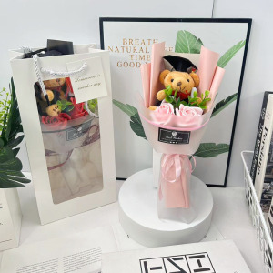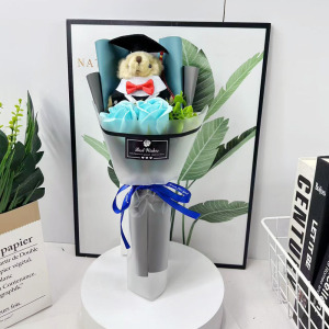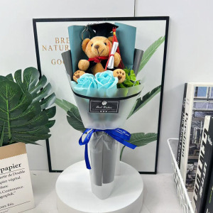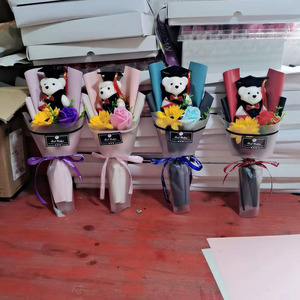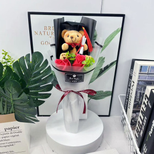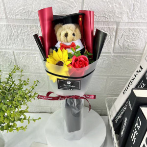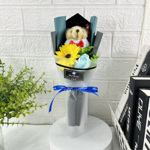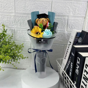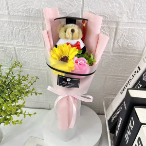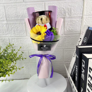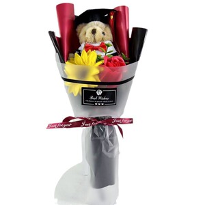 ヒマワリ幼稚園児卒業イベントプレゼント写真撮影卒業式博士熊漫画花束