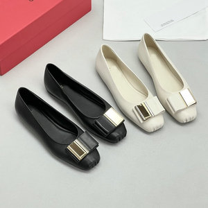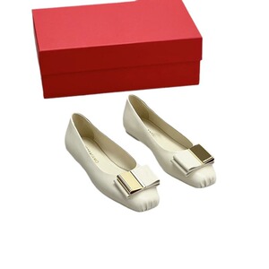 季節の新型のレトロなバレエのフラットシューズの金属の蝶結びのボタンは足の感覚が柔らかくて快適です。
