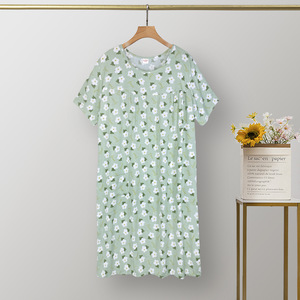 綿のシルクの寝スカートの女性の夏の薄いタイプの半袖のパジャマの甘美でゆったりしている人工綿の大きいサイズのワンピースの春と秋の家庭服