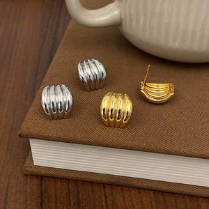 編み込みラウンドゴールドピアス A-1360 ブライト