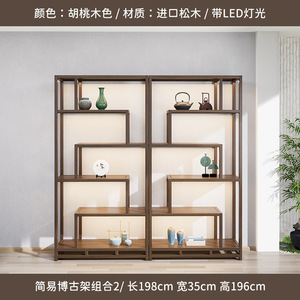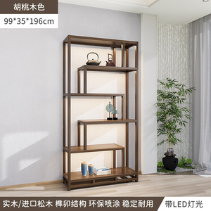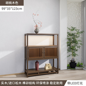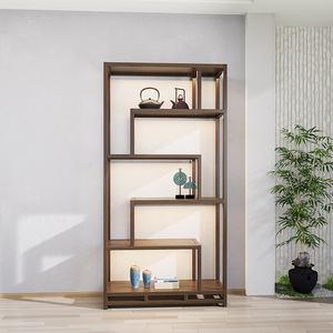 博古架新中国式胡桃木色茶室背景棚茶器収納棚茶箱置物展示室茶戸棚