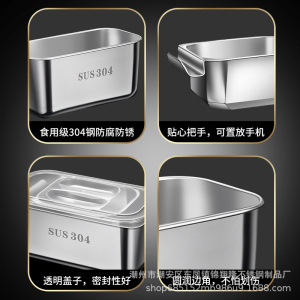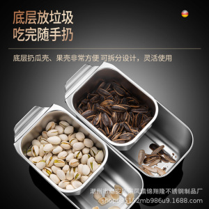 新しいスナックボックス、二層式、蓋付き、正方形、ステンレス製、水切り可能、携帯電話スタンドとしても使用可能、スナックやドライフルーツの収納ボックス