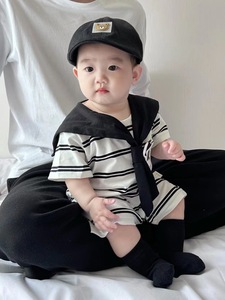 ベビー服夏の薄い襟のお尻の服の洋気の男の子の赤ちゃんの漫画の半袖は夏の学院の風に登ります。
