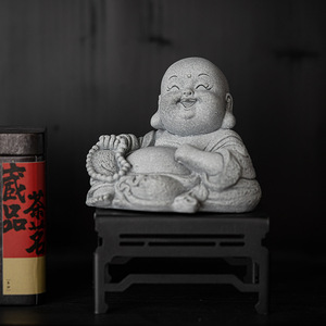 朝翔弥勒仏小仏茶は家の青い砂の石のデスクトップの水槽の景観の盆栽の装飾品を飾っています。