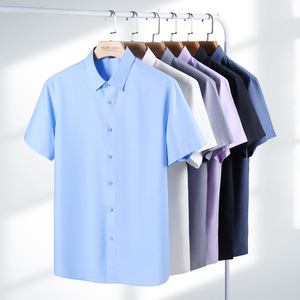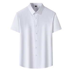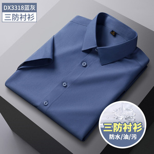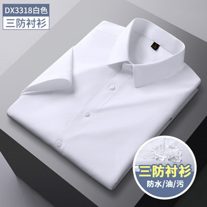 夏の新型高級ビジネスシャツカジュアル服コート男性純色三防白寸衣男性半袖シャツ
