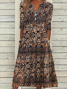 在庫あり 欧米 Amazon wish AliExpress 独立サイト 花柄半袖ワンピース レディース 民族風プリントワンピース