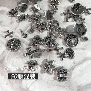 50個のクロハートネイルアクセサリーのレトロなパンク風の混合合金金属の暗いスタイルの個性的な爪の装飾