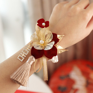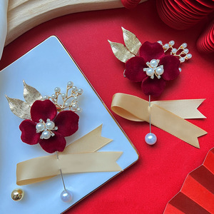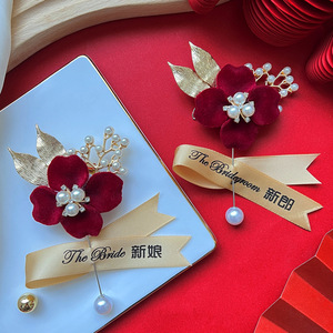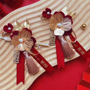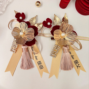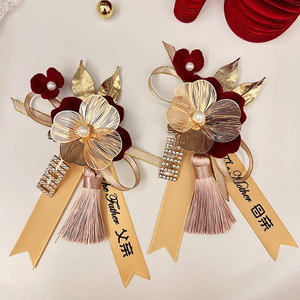 結婚用品セット家族新婦新郎高級感胸花準備結婚襟花シミュレーション絹布胸花針卸売り