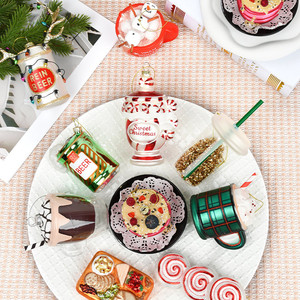 クリスマス装飾手作りクリエイティブ塗装ガラスペンダントケーキ飲料食品造形ペンダントクリスマスツリーペンダント