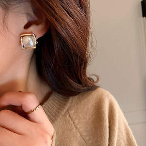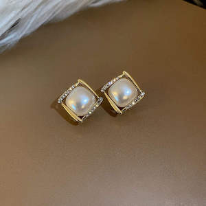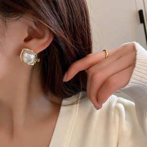 S925銀針満ドリル真珠イヤリング女性フランス式小衆デザインピアス気質百合耳クリップイヤリング卸売り