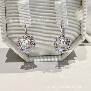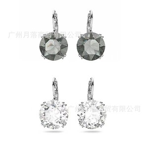 施家1:1对版黑白圆形切割水滴形状贝拉耳钉女施华洛元素水晶耳环
