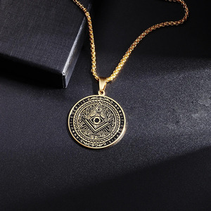 クロスボーダーの新型レトロ全視の目の丸いペンダントステンレスのネックレスの男性はヒップホップのチタン鋼のペンダントを合わせます。
