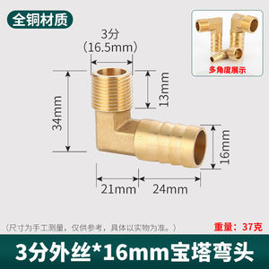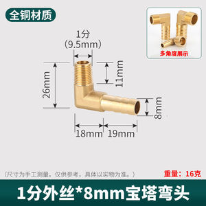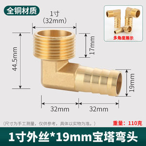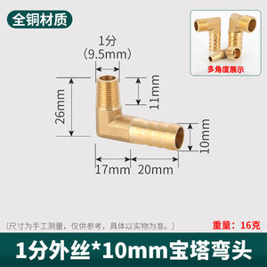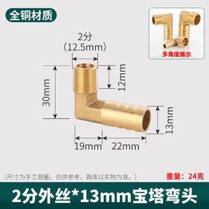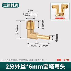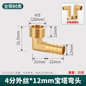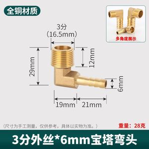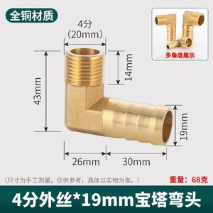 銅外糸宝塔継手エルボ1/2/3/4/6分ガスノズル軟皮管外歯グリーンヘッド部品