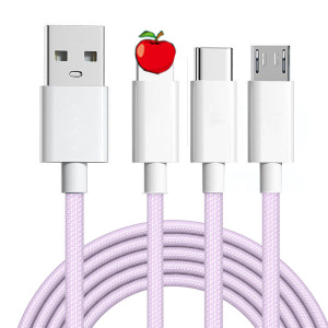 48編マカロンカラー編組usb回転一引き三携帯電話急速充電ケーブル三合一充電ケーブル