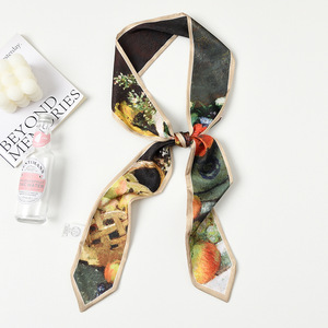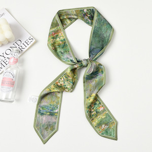 ゴッホの緑の花田の油絵のスカーフの小さい長い条の女性の百合の長い条の編みの髪は馬尾を結んで包みます。