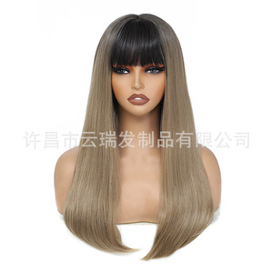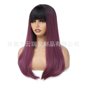 アマゾンクロスボーダー対外貿易欧米風斉前髪グラデーションワインレッド内ボタンかつらメーカー直販