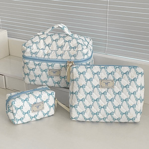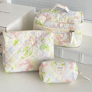 蝶結びの花の化粧バッグ大容量洗面バッグ宮廷風キルティング収納バッグ携帯用柔らかいハンドバッグバッグ
