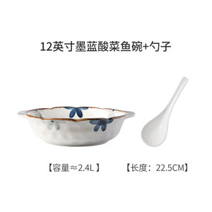 和風漬け魚大ボウル家庭用大スープボウル双耳スープボウルセラミック大皿煮魚池祥