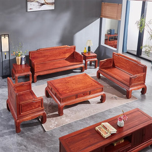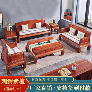 新型マホガニー家具アフリカ花梨ハリネズミ紫檀実木家具中国式客間別荘ソファーセット