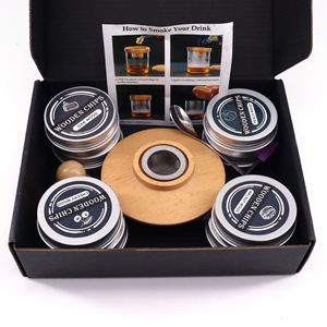 4フレーバーブナ材空飛ぶ円盤セット(スモーカー+4フレーバーウッドチップ+ラウンドカバー+フィルター+スプーン+クリーニングブラシ)