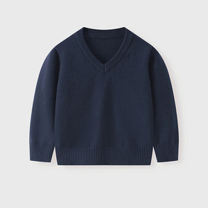 韓国版の春と秋の大きな子供用綿Vネックセーター、薄い無地のボトムス、男の子と女の子のカレッジスタイルのプルオーバーセーター
