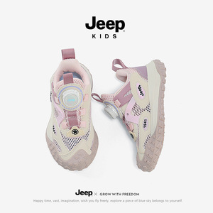 ジープ女の子用シューズ回転ボタン付きスポーツシューズ夏用メッシュ通気性シューズ2025新作ソフトソール子供用ランニングシューズ