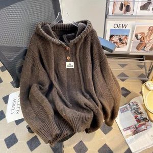 新しい韓国スタイルの厚いフード付きセーター女性のための秋と冬ルーズレイジースタイル巾着アウターニットスウェットシャツトレンディ