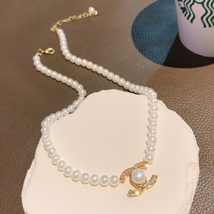 2024年新型シンプルで贅沢な小香風真珠フラッシュドリル首鎖ネックレス鎖鎖女百合気質ファッション