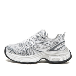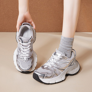 奥古獅子登厚い底のお父さんの靴の女性の2024年の新型の夏のネットの顔は足の小さい運動靴の銀色のカジュアルシューズを現します。
