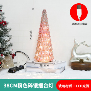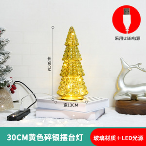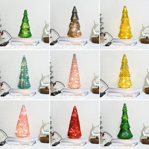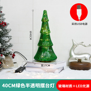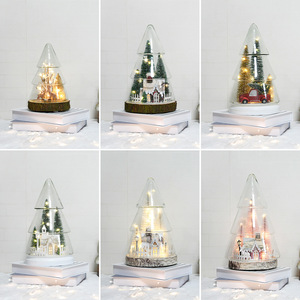 クリスマスシーン装飾新作カウンターショーウインドーデスクトップ置物小型ガラスクリスマスツリー発光装飾灯